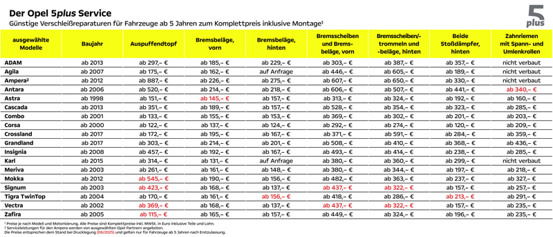 - für viele Opel Pkw ab fünf Jahren nach Erstzulassung